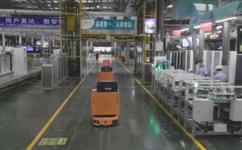 为车载冰箱物流配送打造的智能解决方案,,,,包含产中物流通过潜伏举升AMR搬运至线边,,产后成品物流智能仓储,,流程包含产中物流智能齐套入库,,线边安灯叫料AMR智能配送至线边,,,成品入库、、出库,,通过无人堆高车机器人,,,,智能仓储管理替代人工作业管理,,,实现更高存储、、更高效率、、、更具柔性化的解决方案。。